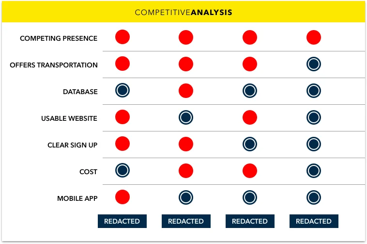 I jumped into a competitive analysis to understand the market both locally and nationally. I primarily found services providing one or two features, but not much else. They were focused in their audience but lacking key essentials in providing a good user experience. From easy sign up to a usable website, the fundamentals were not in place to maintain or grow their user base. The one outlier was a startup that was similar to our client that was providing one key feature: donation transportation. This was a fascinating turn of events as we had questioned our client about this in our first meeting. We returned to wondering if the current onus on the recipient to retrieve donations was preventing more food banks from participating in this service?